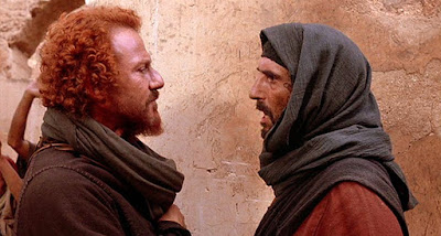 Stanton had dozens of Westerns and other genre films under his belt, then appeared in a series of cult movies that brought him to the forefront: Paris, Texas (1984), Repo Man (1984) and The Last Temptation of Christ (1988). In the latter Stanton played Saul/ Paul, shown here with Harvey Keitel as Judas Iscariot. (Also on the Last Temptation set: the late singer-songwriter Michael Been of the 1980s band The Call. I saw him perform with Harry Dean Stanton at Washington D.C.'s Bayou club back then.)